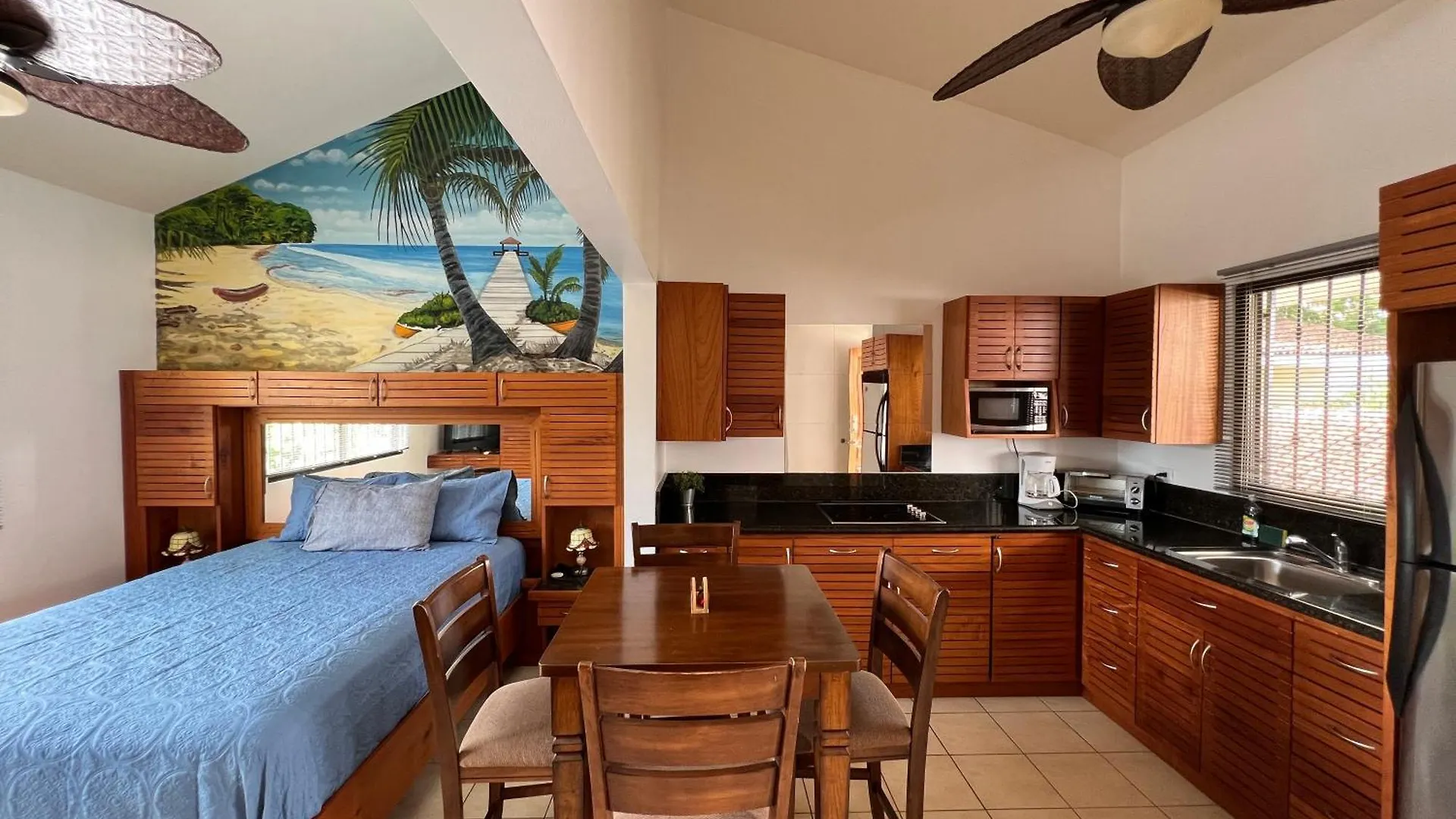Une cafetière/théière sont disponibles dans une cuisine qui comprend également un micro-ondes, un réfrigérateur et un grille-pain. Vous pourrez dîner à Soda Mediterranea, situé à quelques pas de villa. Les hôtes peuvent facilement rejoindre l'aéroport Liberia, situé à 31 minutes en voiture des propriétés Tropical Beach Second Floor Studio With Hill View.